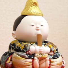 鶴屋半兵衛作品のなかでも小さ目なお人形の「童心」。全体造形と特徴ある袖の創作性はなんともかわいらしい人形です。。